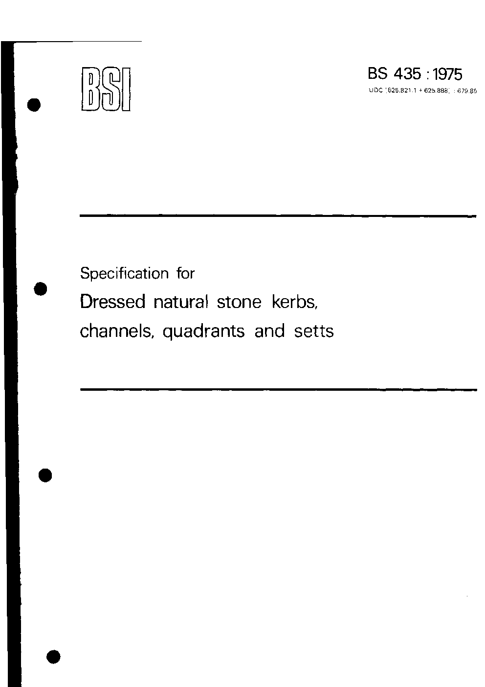 Specification for dressed natural stone kerbs, channels, quadrants and setts