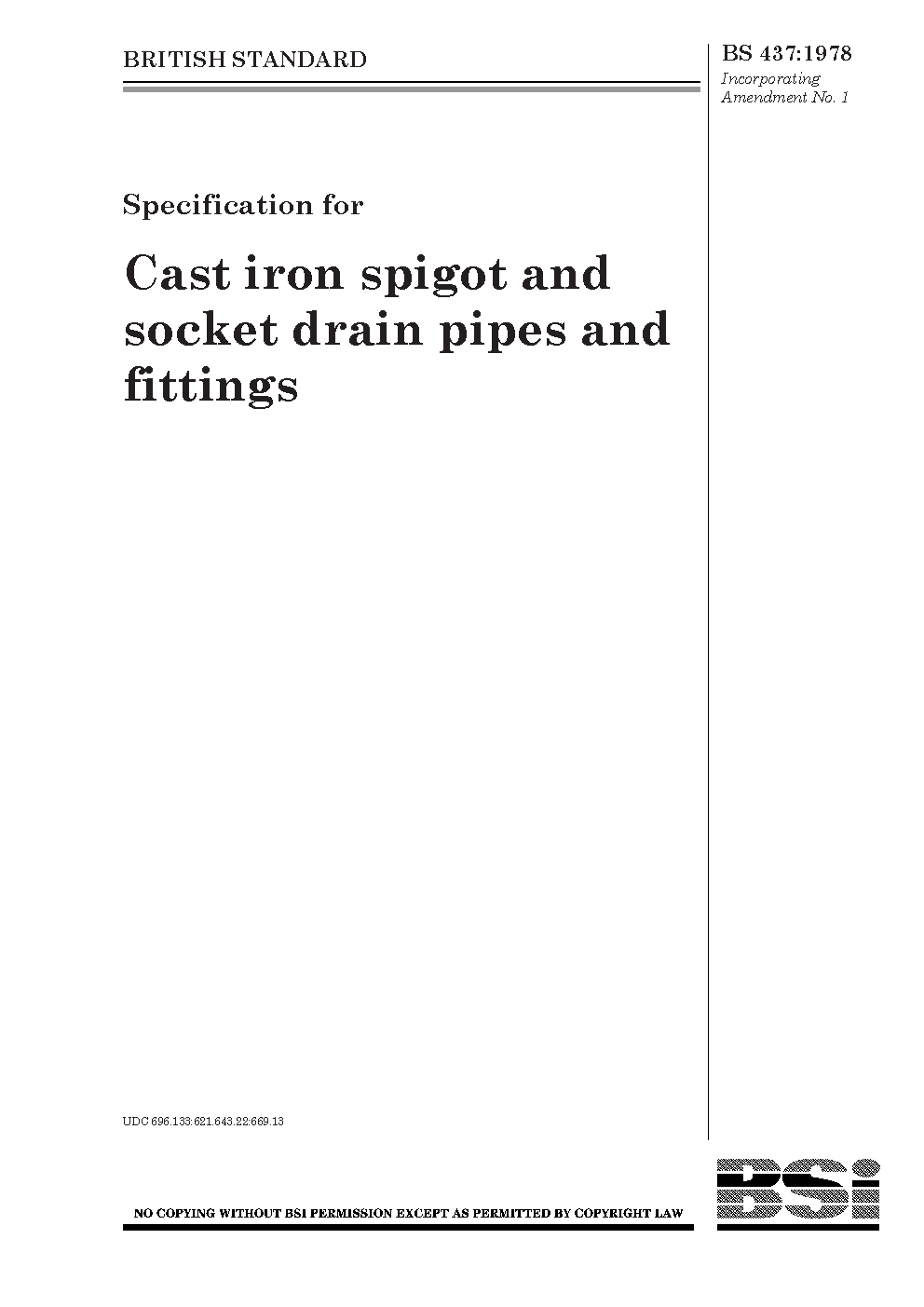 Specification for cast iron drain pipes, fittings and their joints for socketed and socketless systems