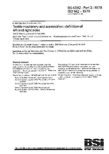 Specification for textile machinery and accessories: definition of left right sides Weaving preparatory machines