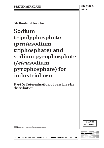 Methods of test for sodium tripolyphosphate (pentasodium triphosphate) and pyrophosphate (tetrasodium pyrophosphate) industrial use Determination particle size distribution