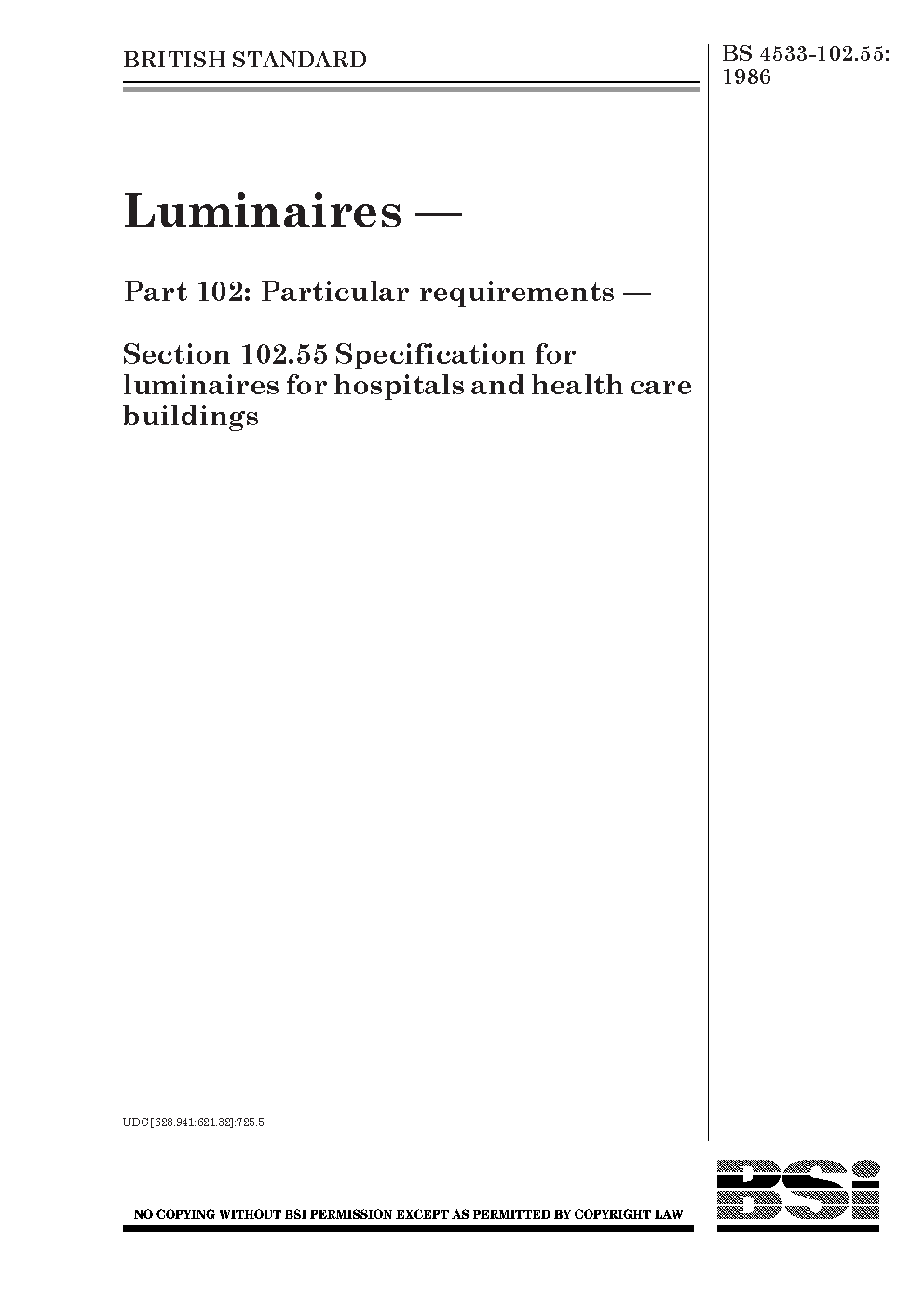 Luminaires. Particular requirements Specification for luminaires hospitals and health care buildings
