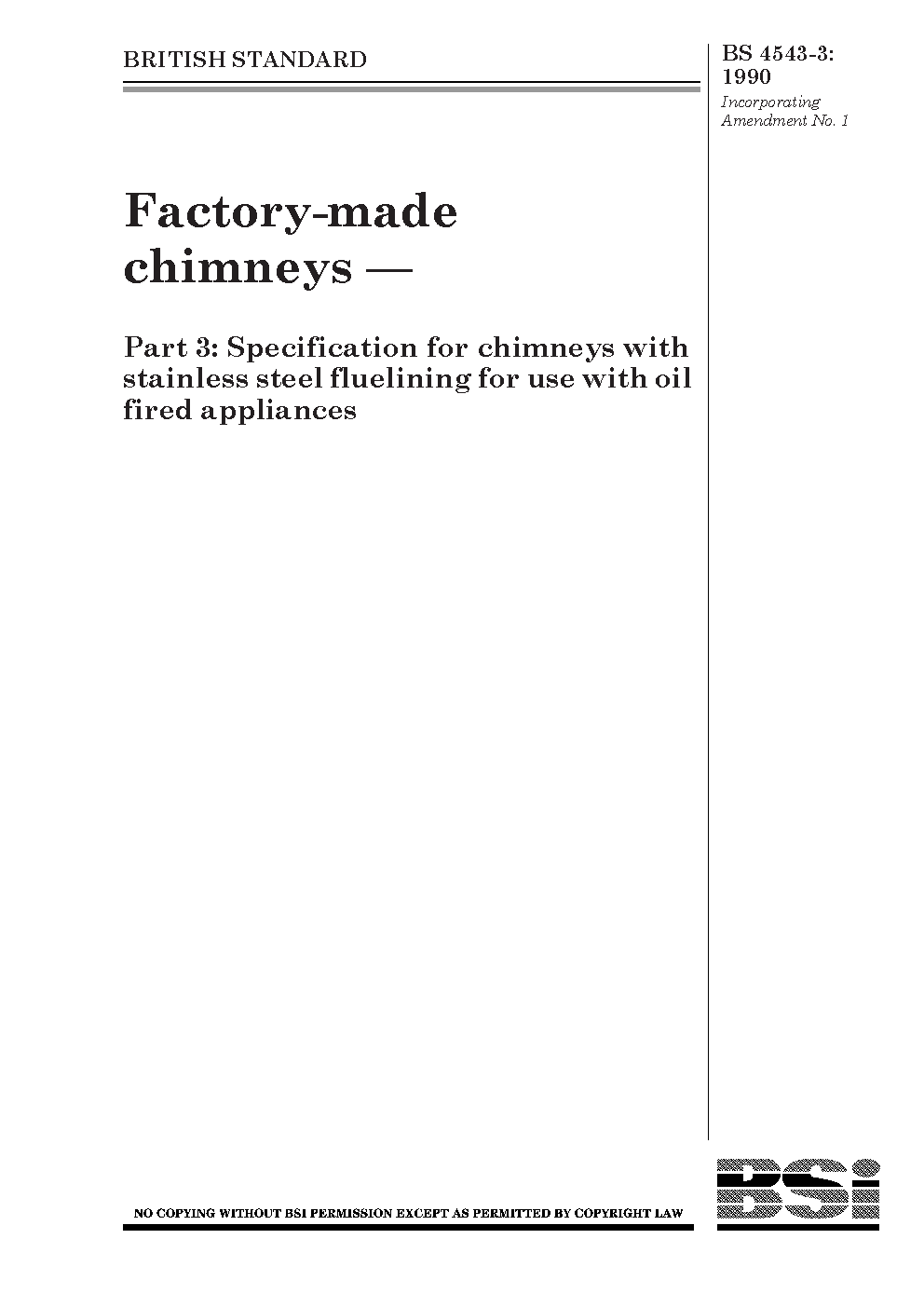 Factory-made insulated chimneys Specification for with stainless steel fluelining use oil fired appliances