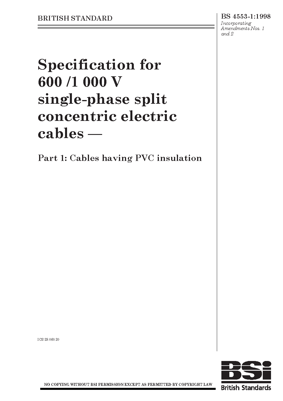 Specification for 600/1000 V single-phase split concentric electric cables Cables having PVC insulation