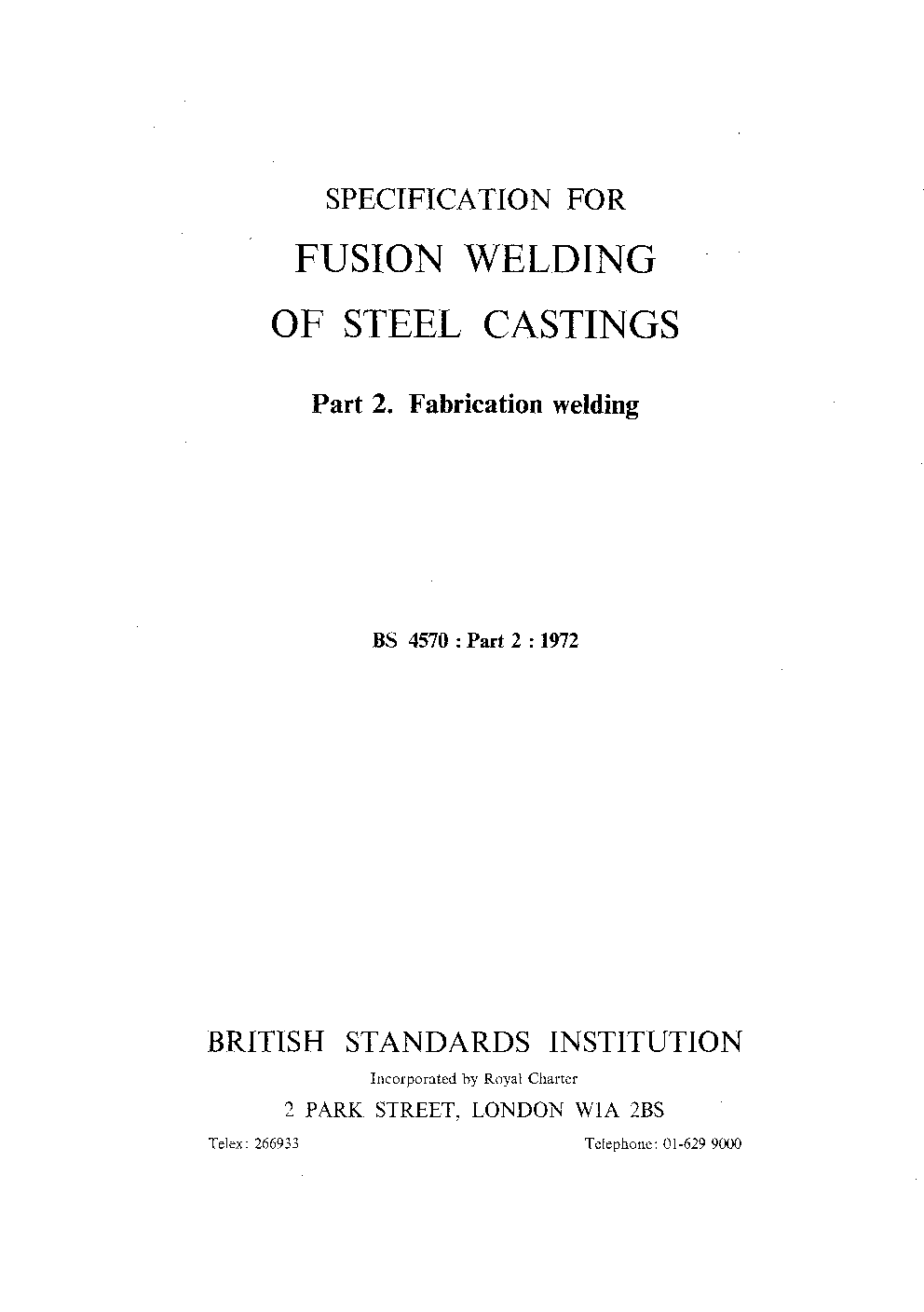 Specification for fusion welding of steel castings Fabrication