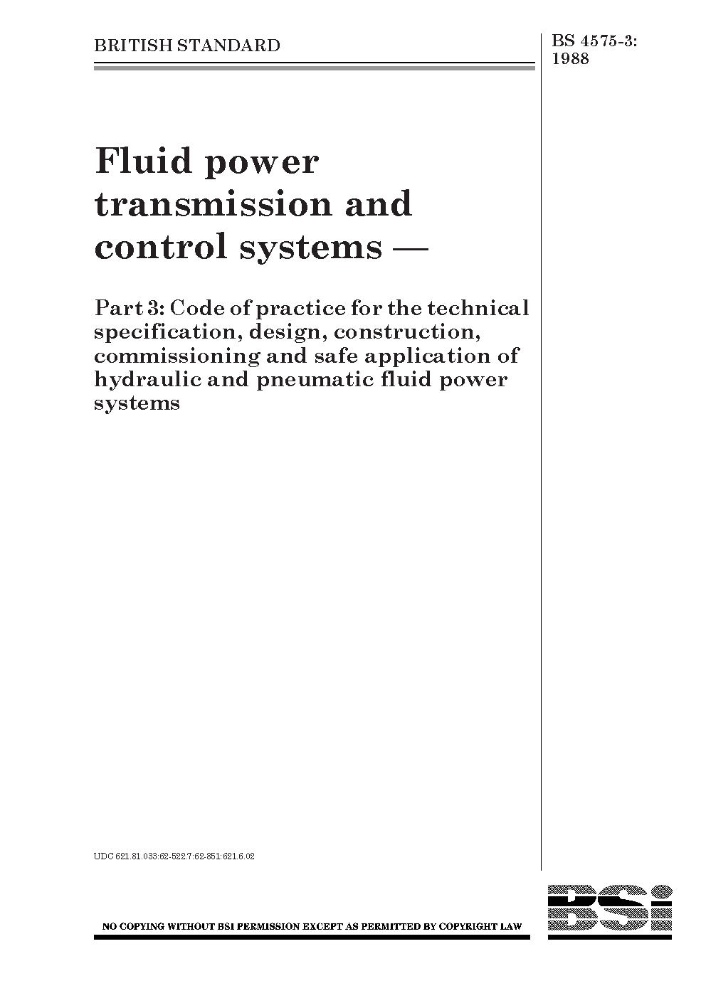Fluid power transmission and control systems Code of practice for the technical specification, design, construction, commissioning safe application hydraulic pneumatic fluid