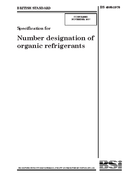 Specification for number designation of organic refrigerants