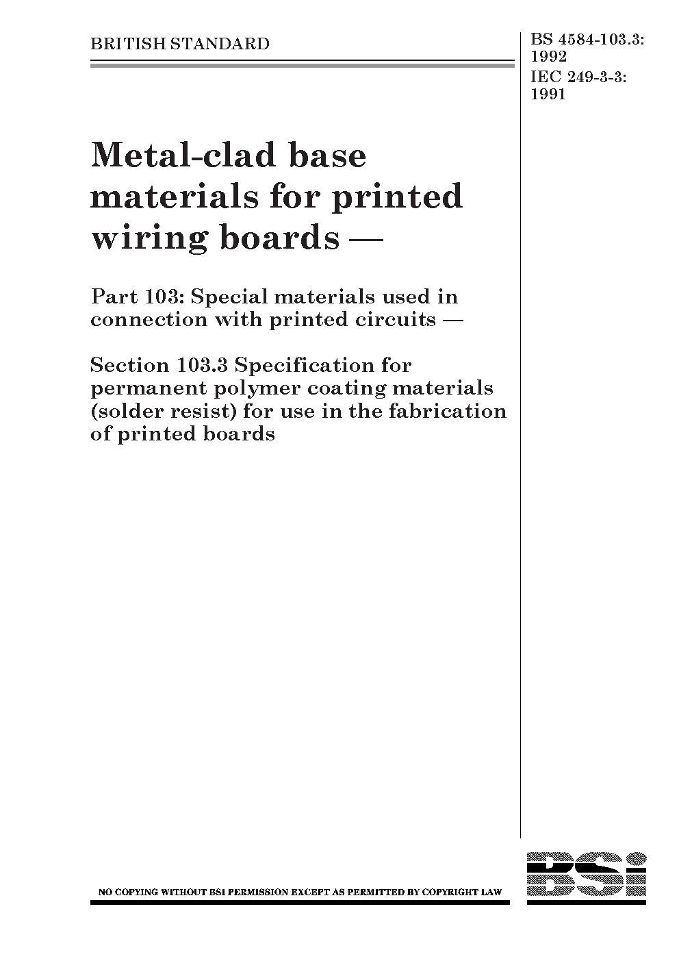Metal-clad base materials for printed wiring boards. Special used in connection with circuits Specification permanent polymer coating (solder resist) use the fabrication of boards