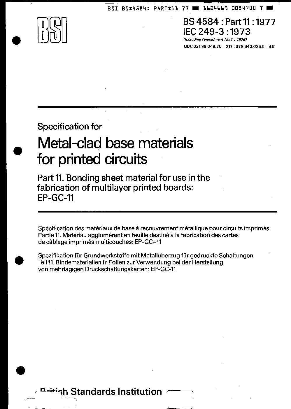 Specification for metal-clad base materials printed circuits Bonding sheet material use in the fabrication of multilayer boards: EP-GC-11