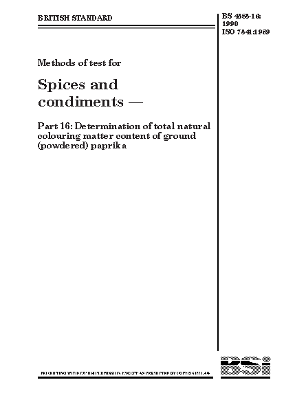Methods of test for spices and condiments Determination total natural colouring matter content ground (powdered) paprika