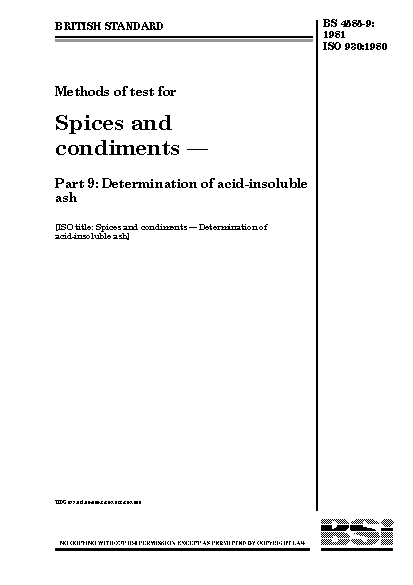 Methods of test for spices and condiments Determination acid-insoluble ash