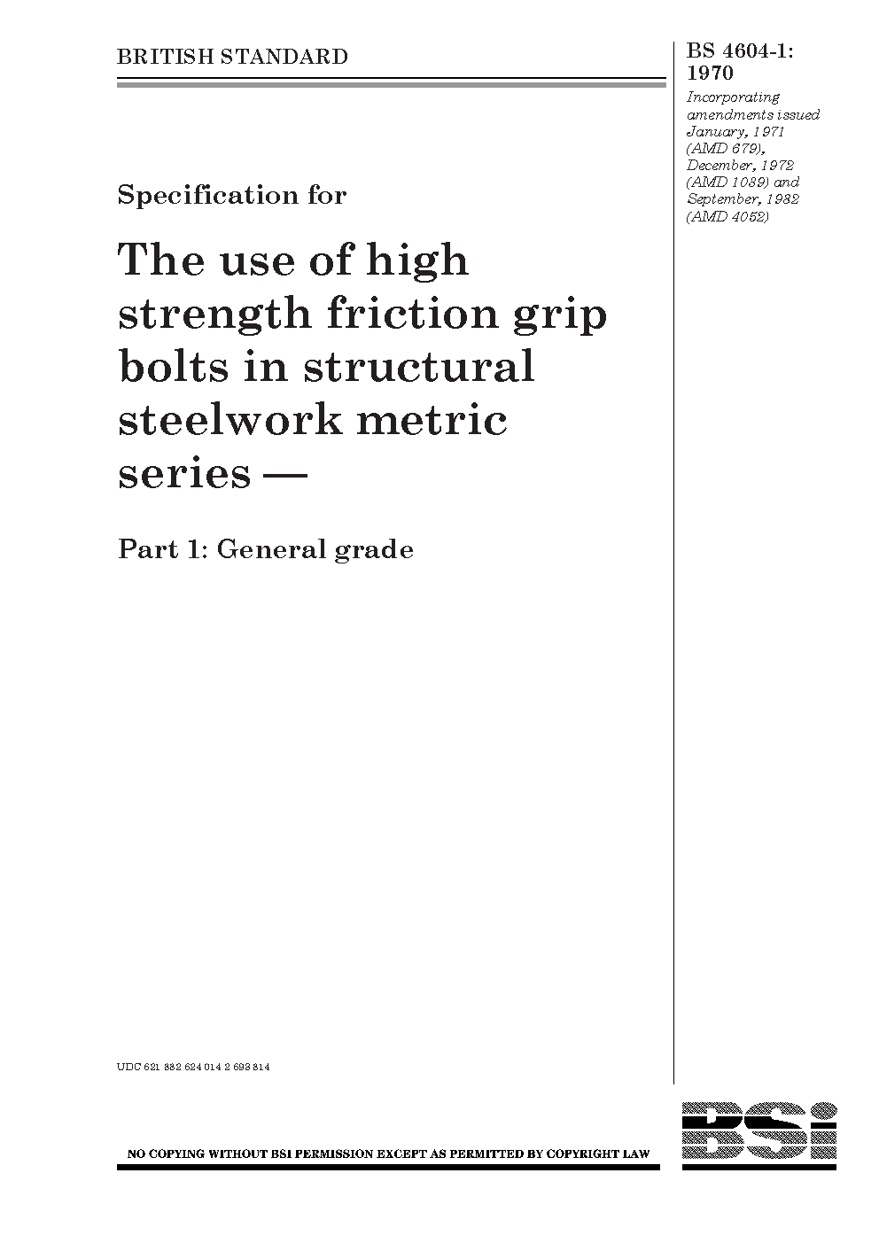 Specification for the use of high strength friction grip bolts in structural steelwork. Metric series General grade