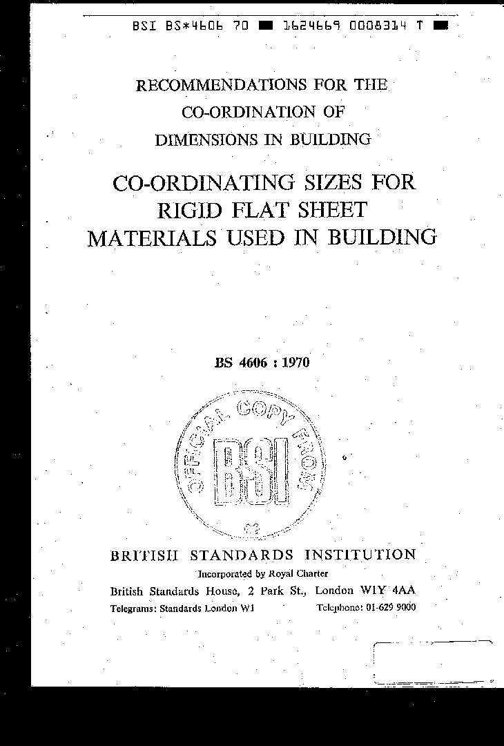Recommendations for the co-ordination of dimensions in building. Co-ordinating sizes for rigid flat sheet materials used in building