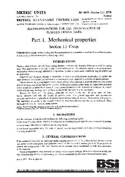 Recommendations for the presentation of plastics design data. Mechanical properties Creep