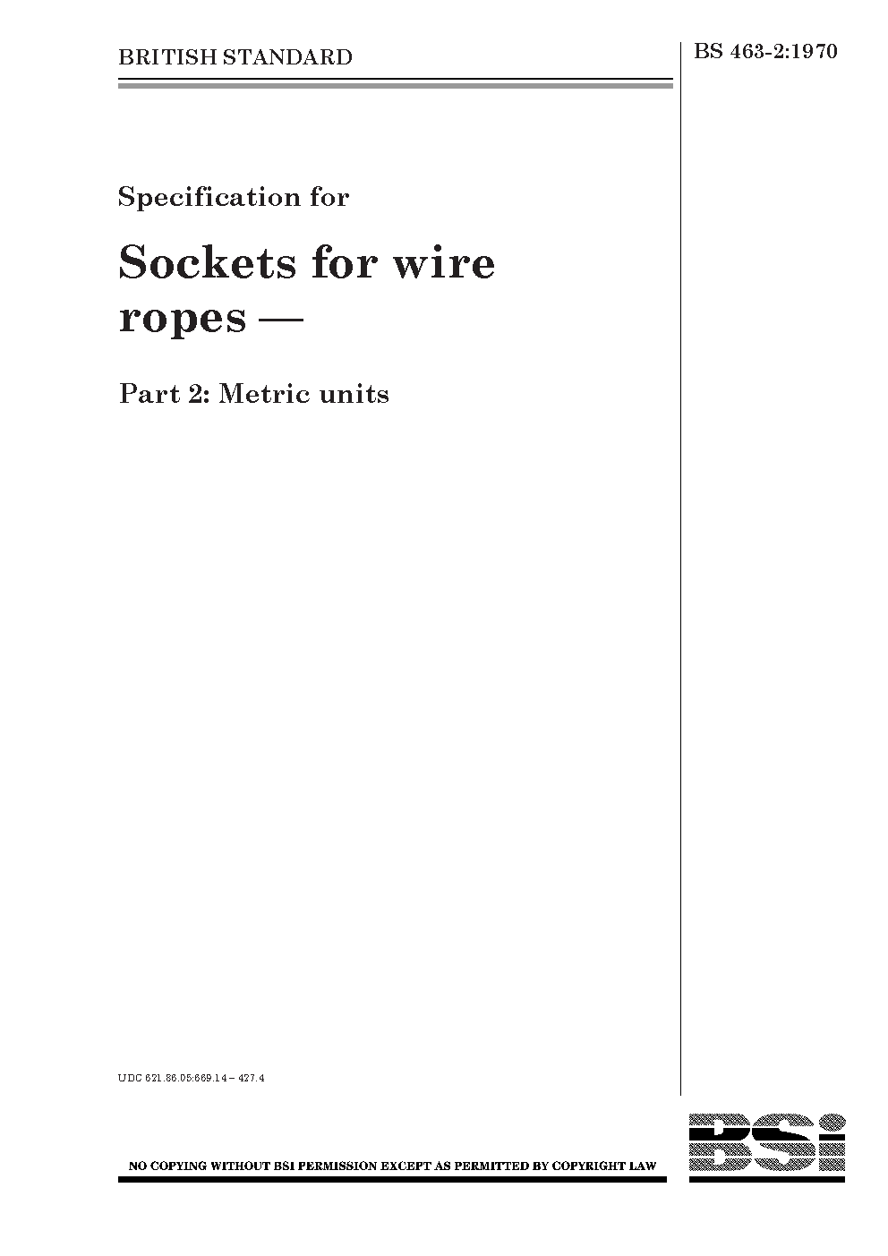 Terminal fittings (ropes);Heat treatment;Sockets (ropes);Galvanizing;Ropes;SI system (metric);Wire ropes;Design calculations;Pins (nails);Steels;Marking;Proof loading;Maximum load;Dimensions;Drop forging