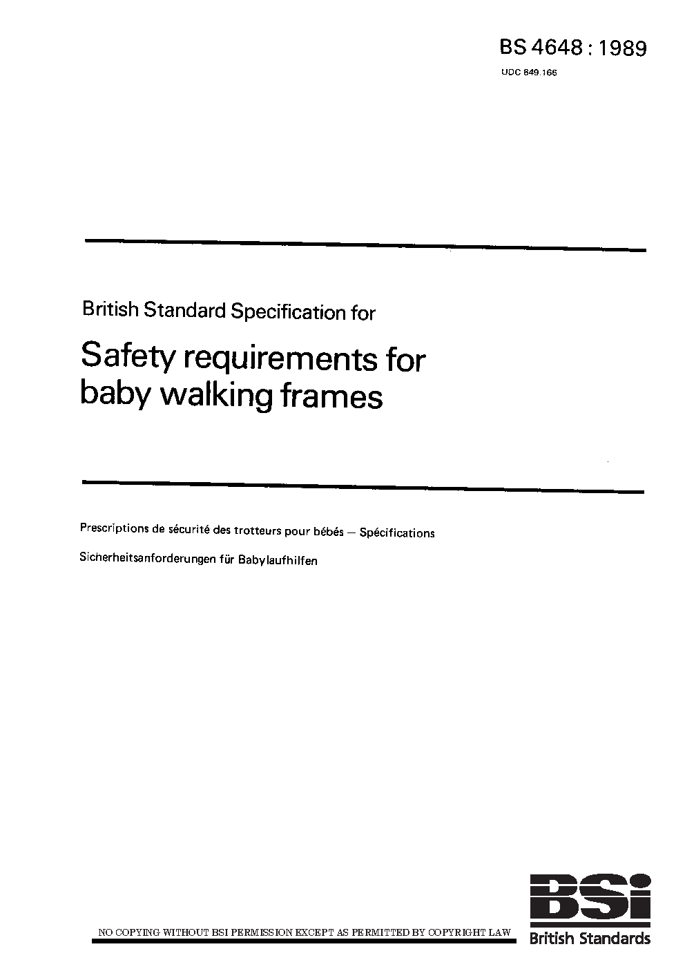 Specification for safety requirements for baby walking frames
