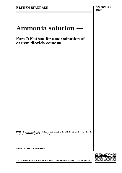 Ammonia solution;Industrial;Determination of content;Testing conditions;Concentration (chemical);Chemical analysis and testing;Precipitation methods;Volumetric analysis;Carbon dioxide