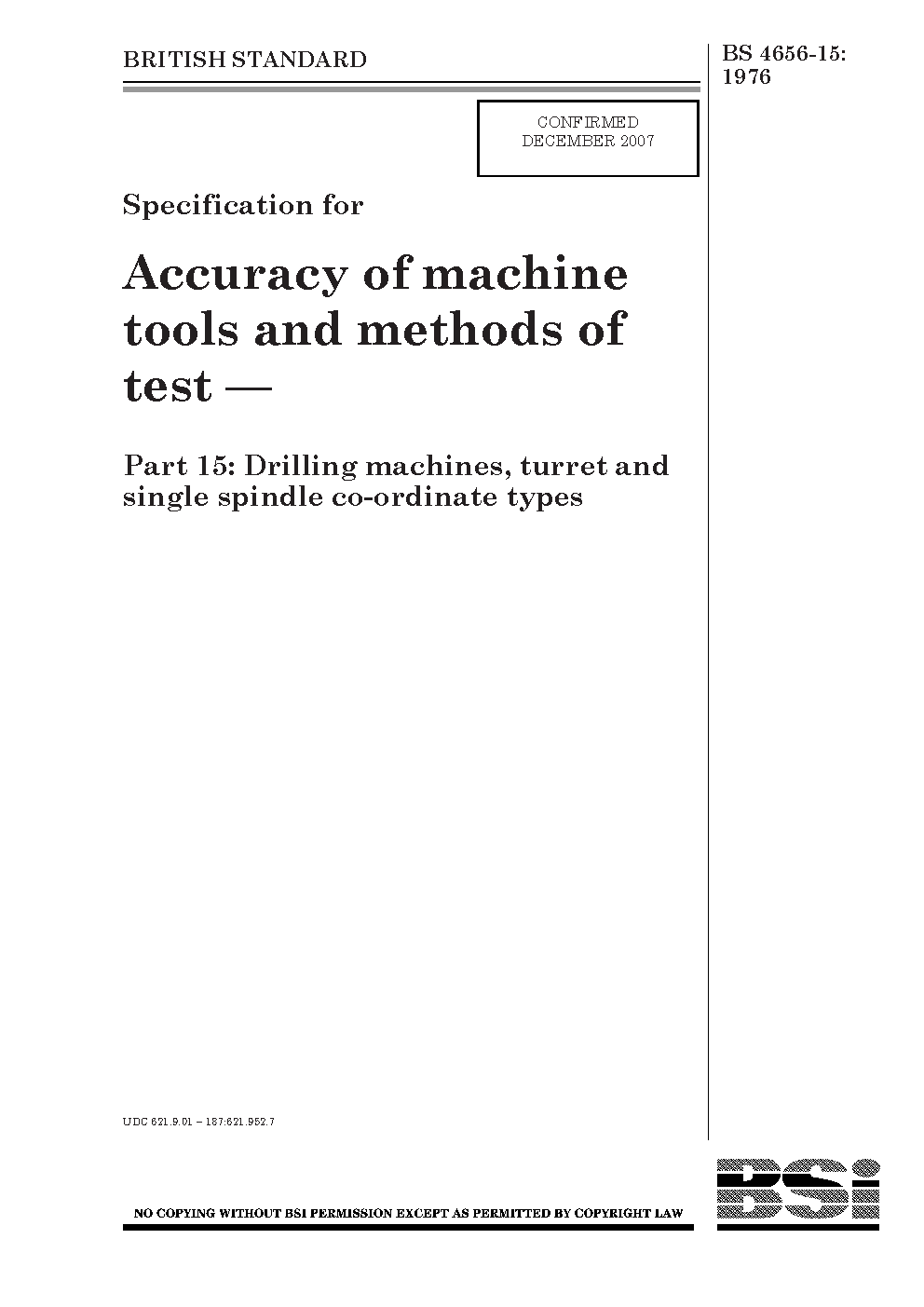 Machine tool components;Drilling machines;Dimensional tolerances;Verification;Machine tools;Design;Form tolerances;Machining tolerances;Accuracy;Diameter;Spindles;Machine tables;Spindle noses;Slideways
