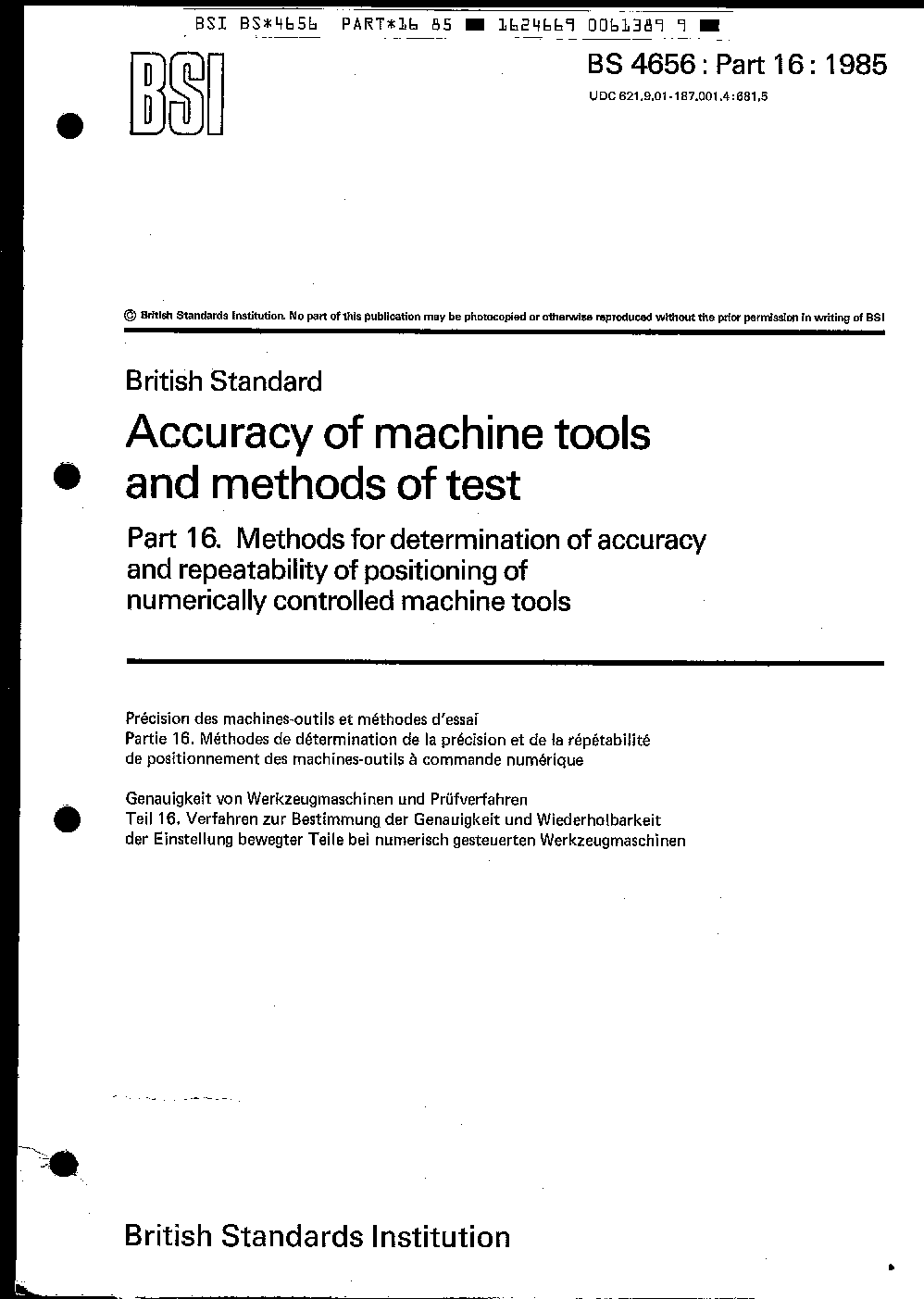 Accuracy of machine tools and methods test Methods for determination accuracy repeatability positioning numerically controlled