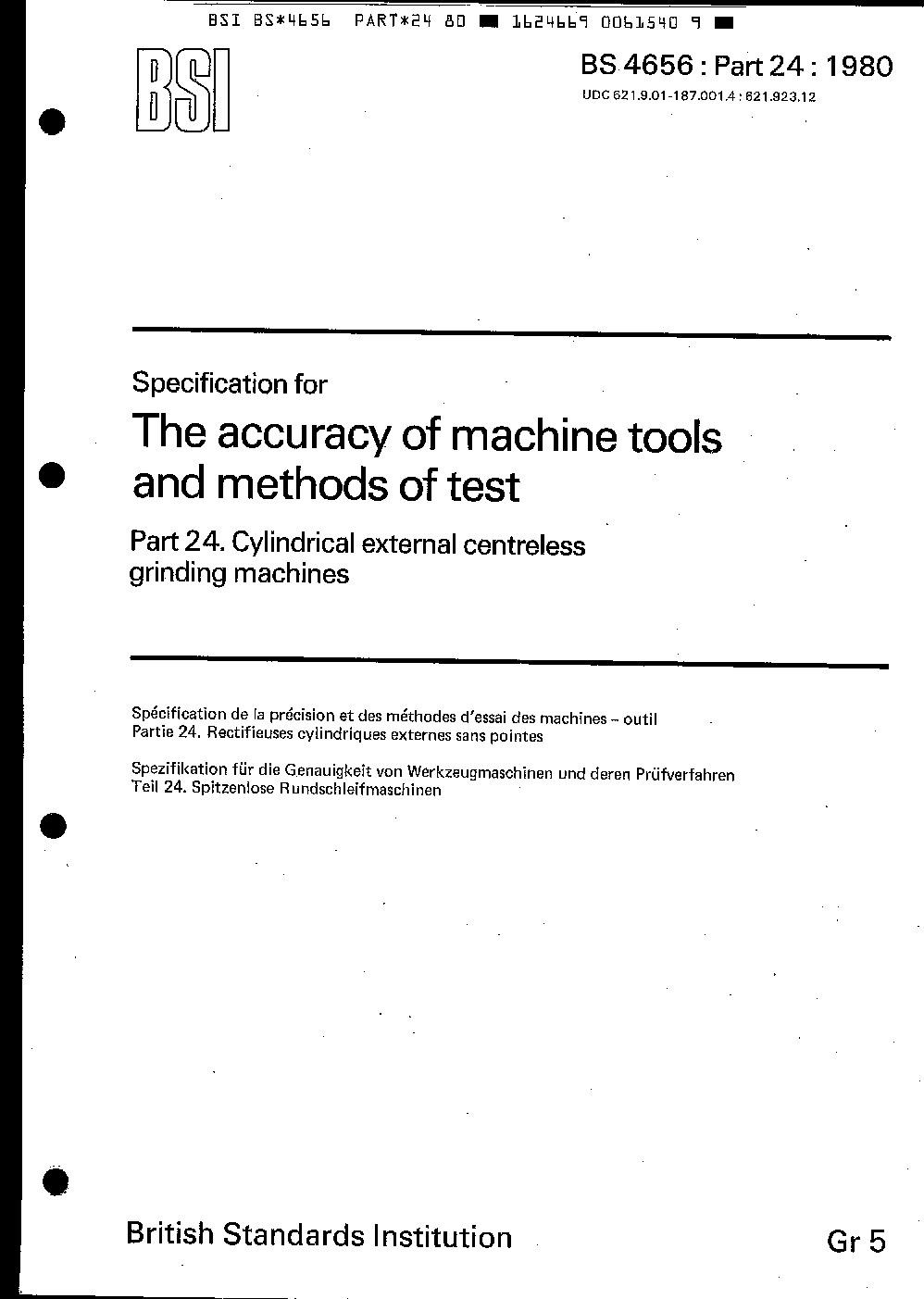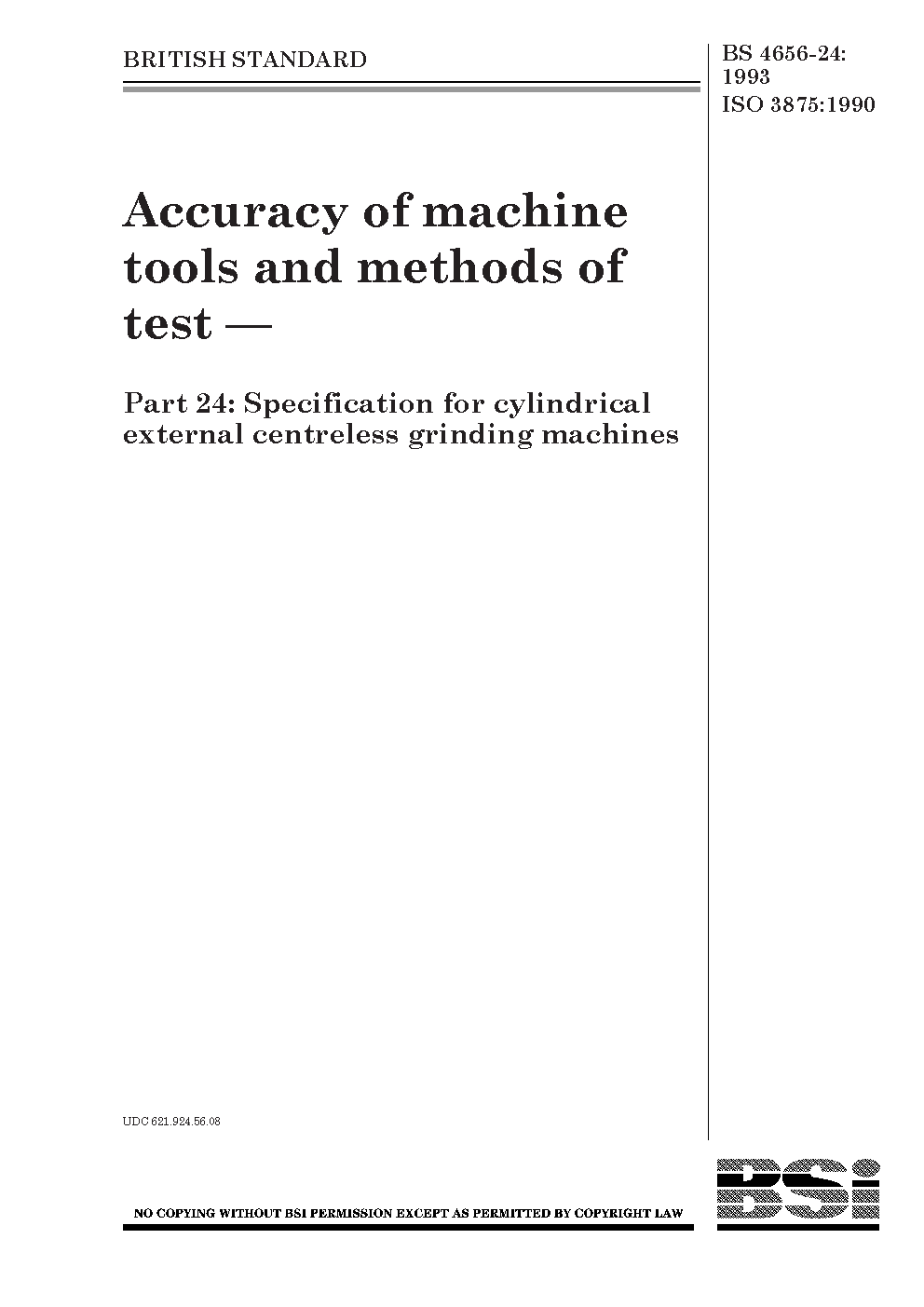 Specification for the accuracy of machine tools and methods test Cylindrical external centreless grinding machines
