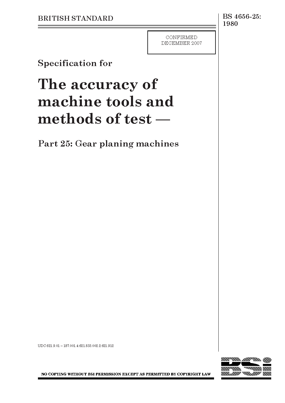 Machining tolerances;Machine tool components;Planing machines;Dividing apparatus;Worms (gears);Gear-cutting machines;Blanks;Spindle noses;Machine tools;Verification;Angular tolerances;Form tolerances;Test specimens;Slideways;Dimensional tolerances;Accuracy;Spindles