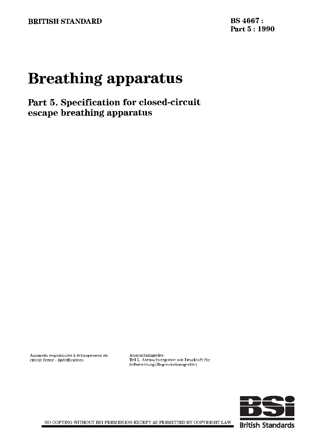Breathing apparatus Specification for closed-circuit escape breathing