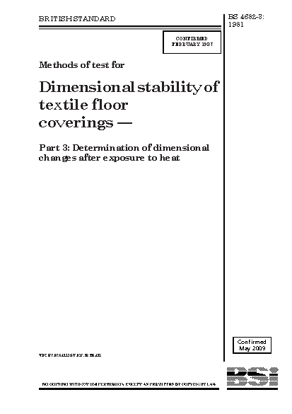 Methods of test for dimensional stability textile floor coverings Determination changes after exposure to heat