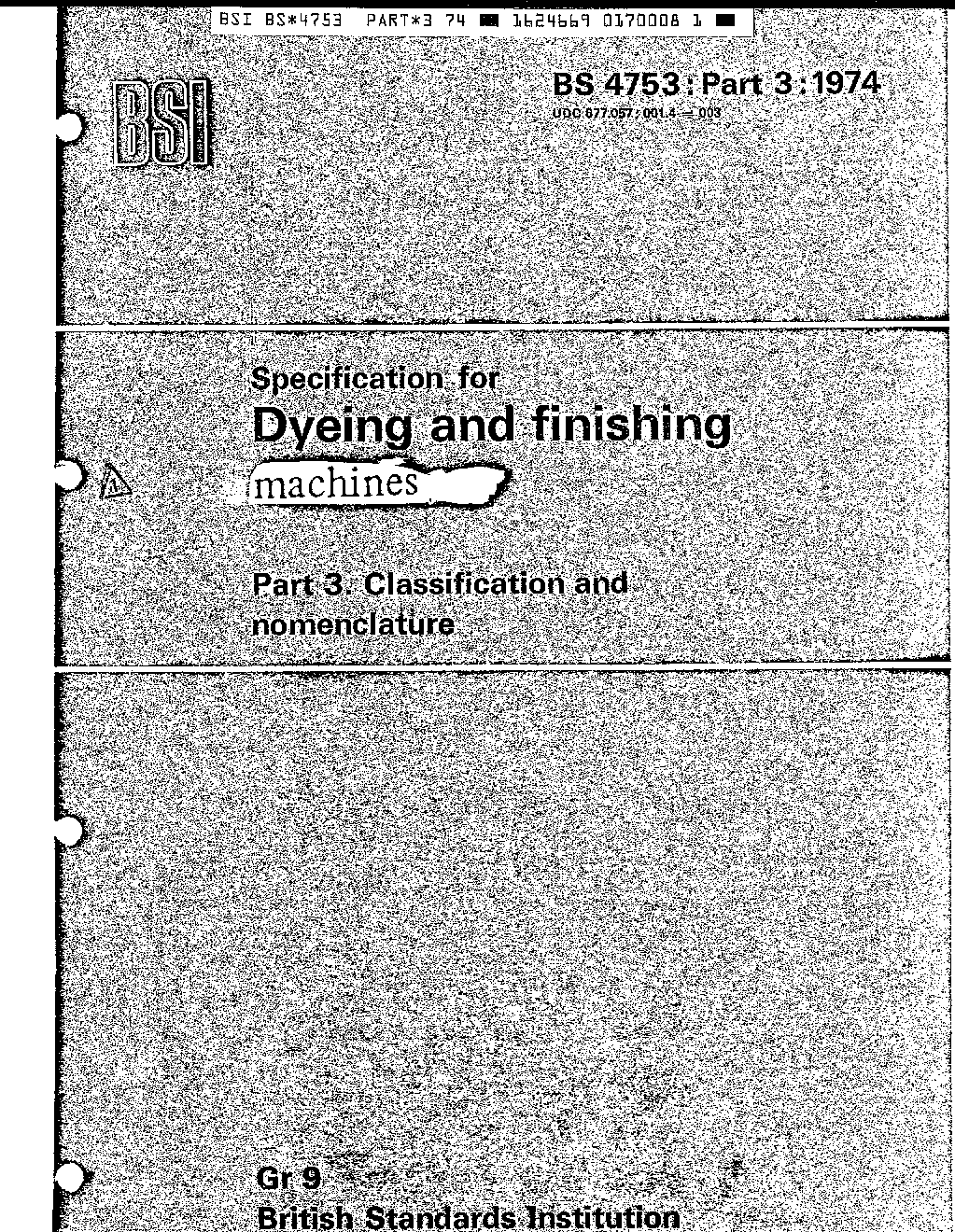 Specification for dyeing and finishing machines Classification nomenclature