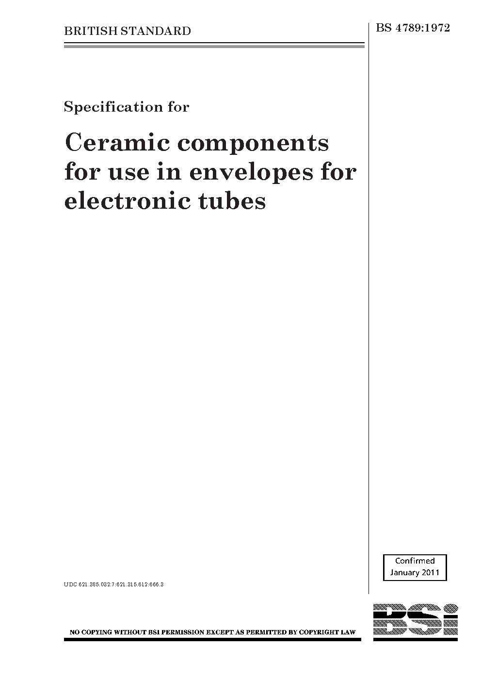 Specimen preparation;Thermal testing;Thermal conductivity;Test equipment;Visual inspection (testing);Electron tubes;Type testing;Permittivity;Mechanical testing;Vacuum tubes;Breaking load;Dimensions;Solid electrical insulating materials;Acid-resistance tests;Electrical resistivity;Microwave tubes;Ceramics;Pressure testing;Dissipation factor;Electronic equipment and components;Testing conditions;Strength of materials;Electron tube structure;Deformation;Test specimens;Electrical insulating materials;Electron tube components