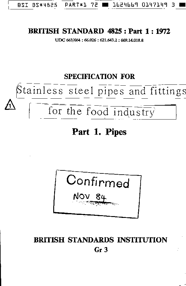 Pipe fittings;Roughness (surface);Steels;Food manufacturing equipment;Marking;Pipe connections;Materials in contact with food;Hygiene;Finishes;Seamed pipes;Grades (quality);Pipes;Stainless steels;Seamless pipes;Dimensions