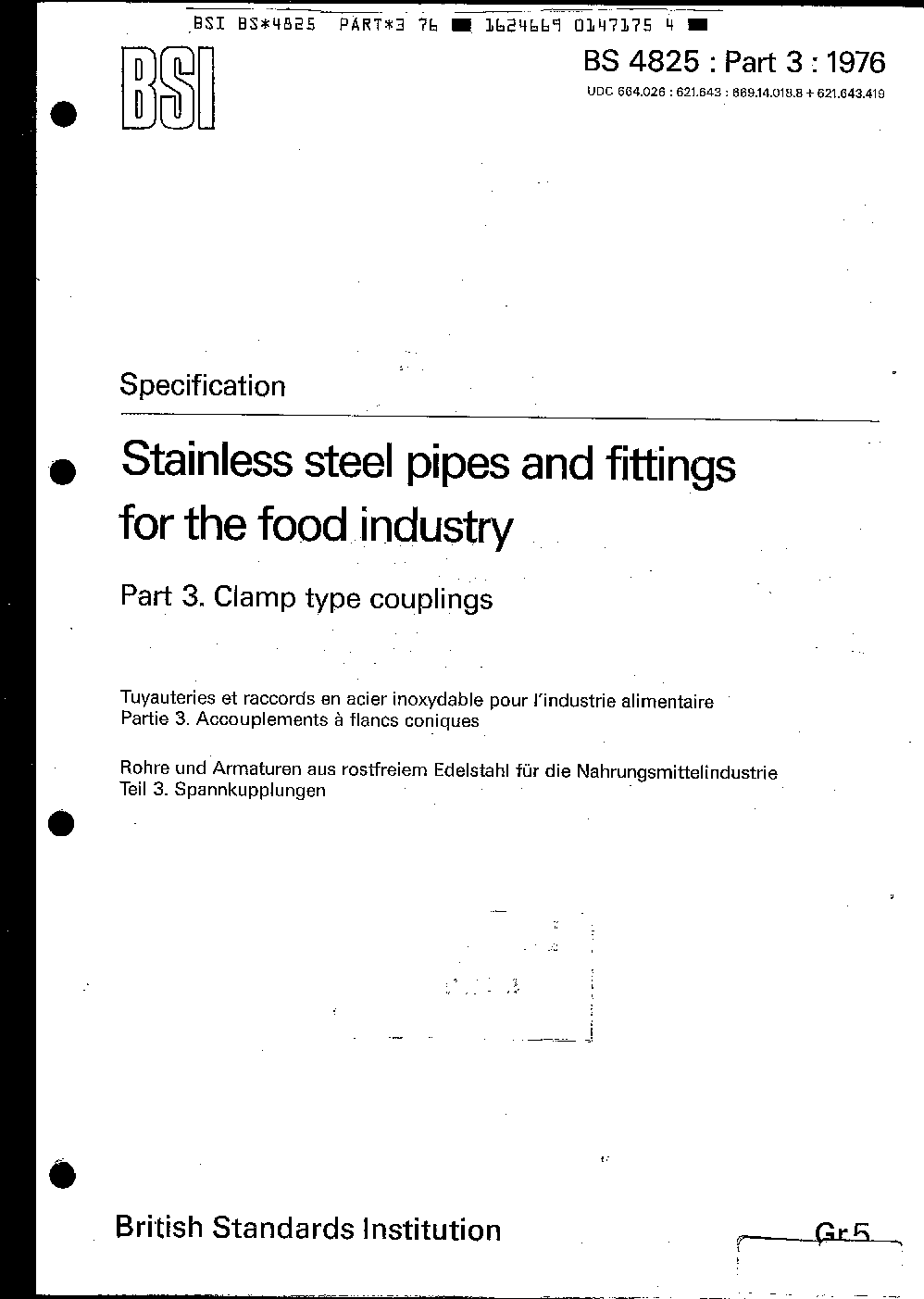 Stainless steel tubes and fittings for the food industry other hygienic applications Specification clamp type couplings