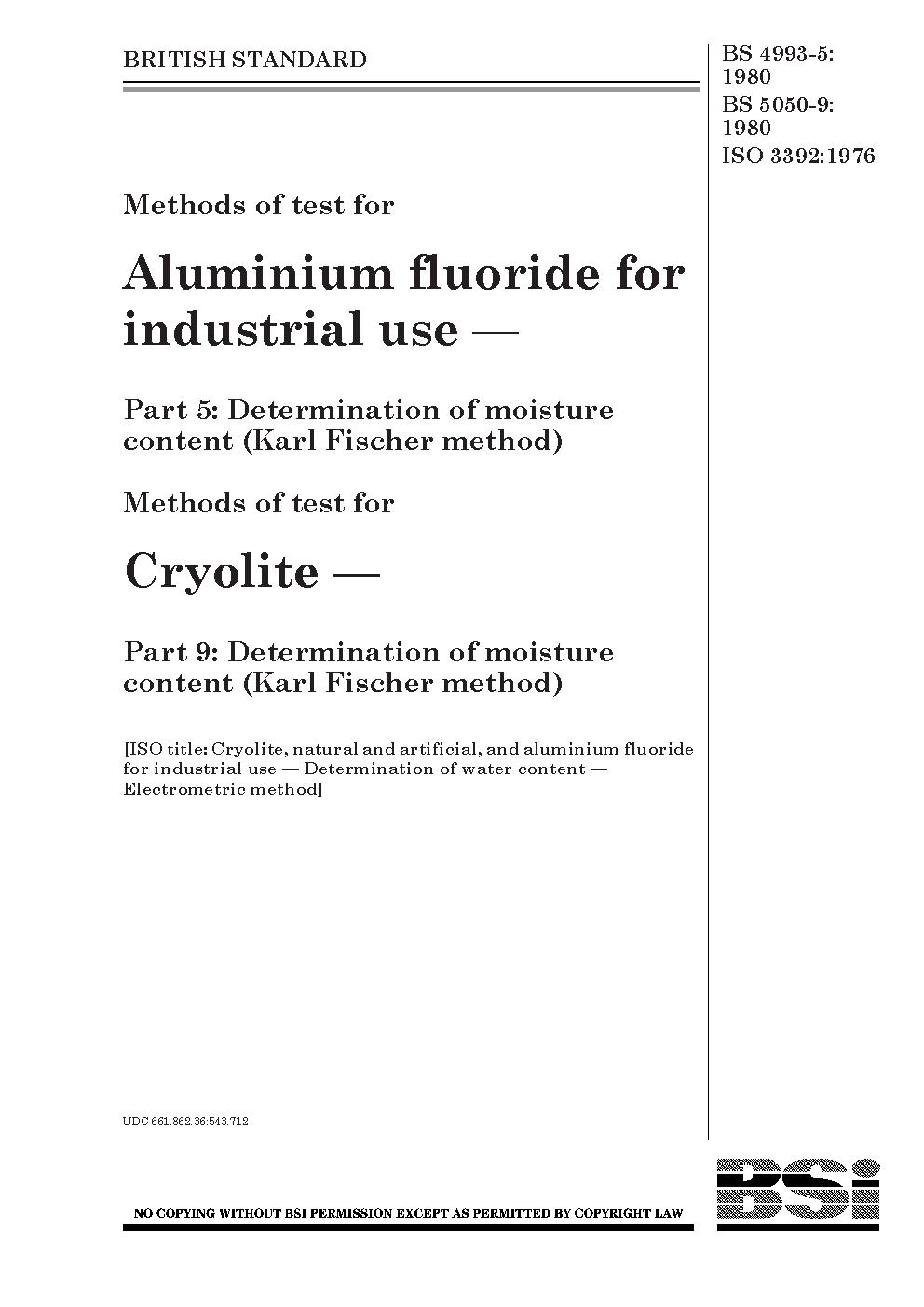 Methods of test for aluminium fluoride industrial use Determination moisture content (Karl Fischer method)