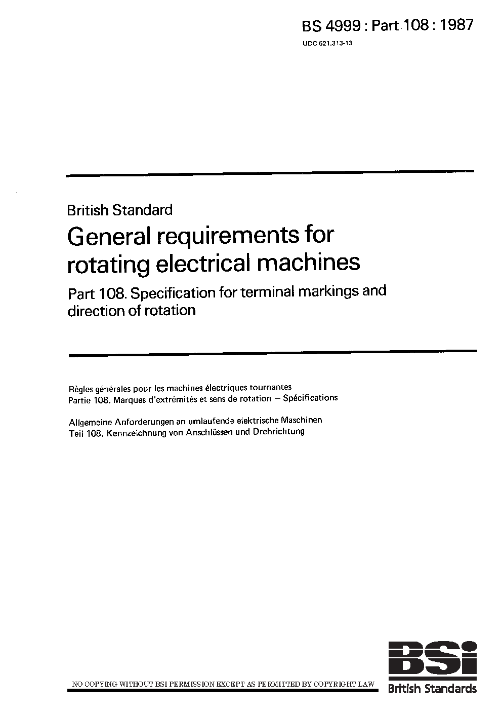 General requirements for rotating electrical machines Specification terminal markings and direction of rotation
