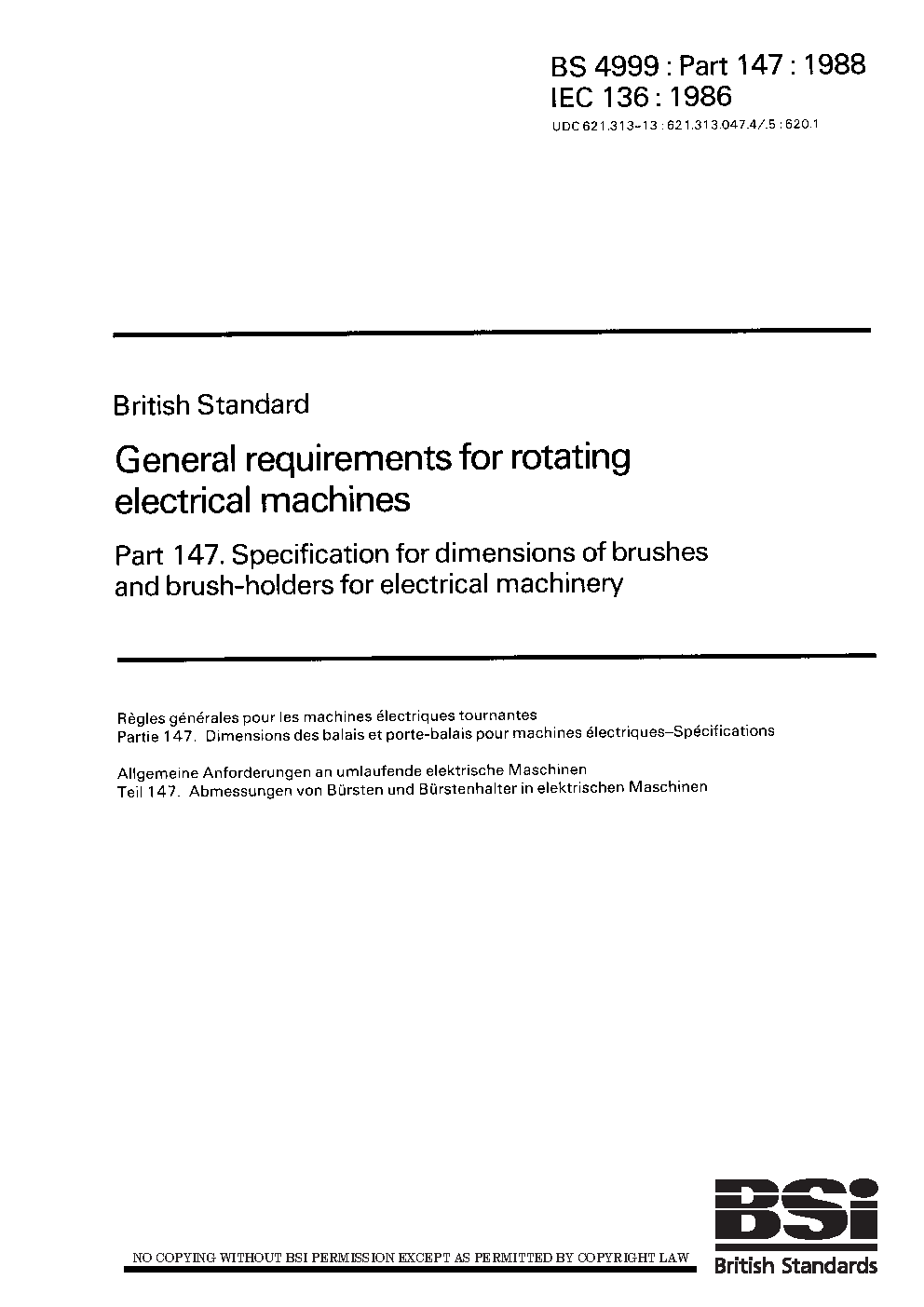 General requirements for rotating electrical machines Specification dimensions of brushes and brush-holders machinery