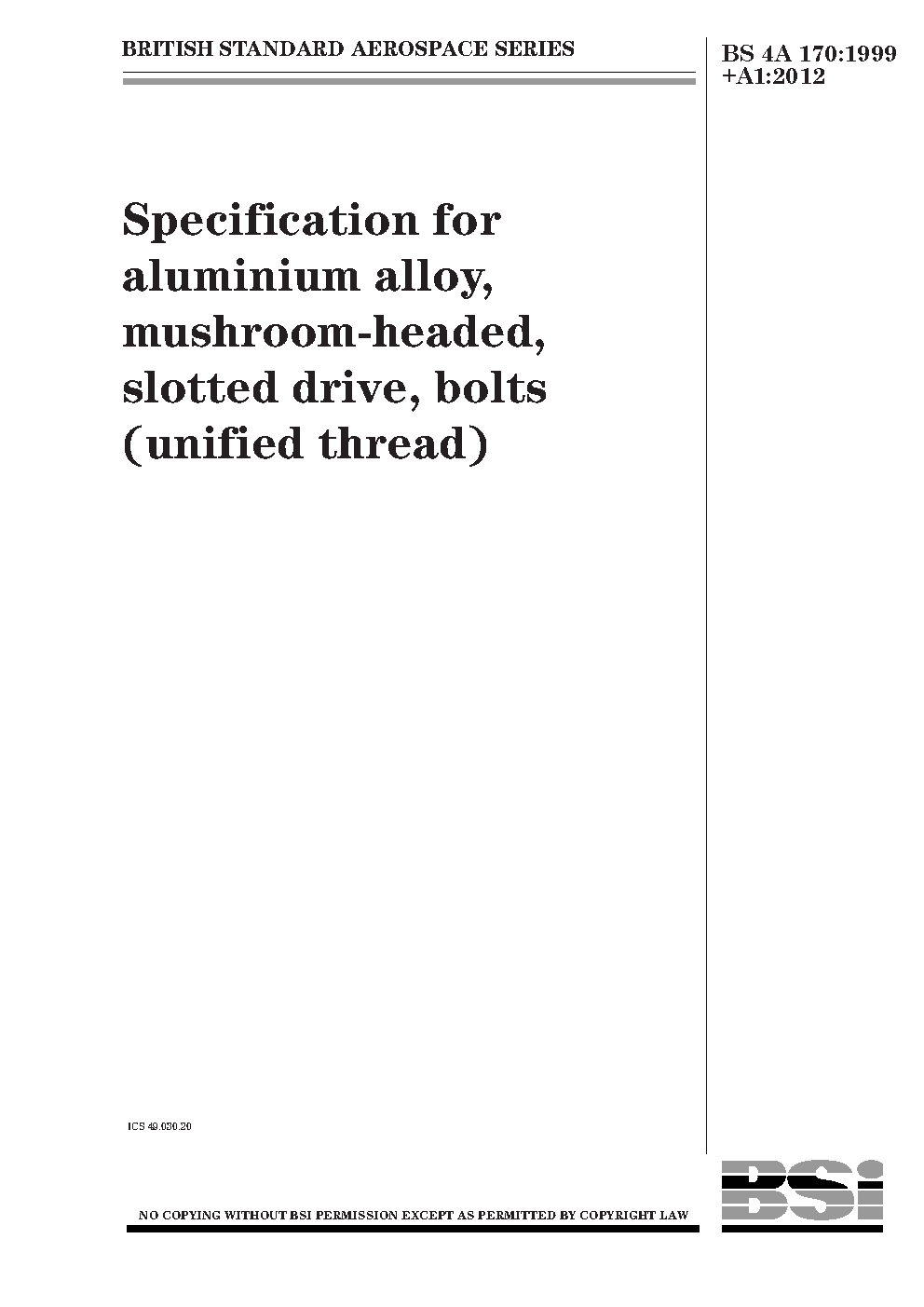 Specification for aluminium alloy, mushroom-headed, slotted drive, bolts (unified thread)
