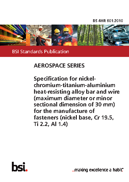 Specification for nickel-chromium-titanium-aluminium heat-resisting alloy bar and wire (maximum diameter or minor sectional dimension of 30 mm) for the manufacture of fasteners (nickel base, Cr 19.5, Ti 2.2, Al 1.4)