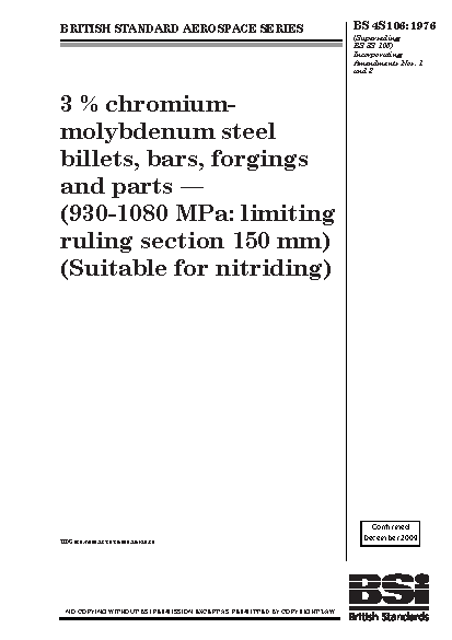 Specification. 3% chromium-molybdenum steel billets, bars, forgings and parts (930-1080 MPa: limiting ruling section 150 mm) (suitable for nitriding)