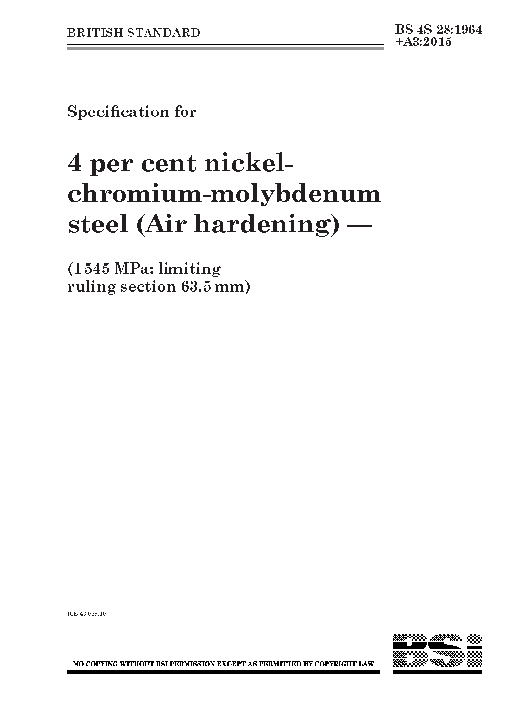 Specification for 4 per cent nickel-chromium-molybdenum steel (Air hardening). (1545 MPa: limiting ruling section 63.5mm)