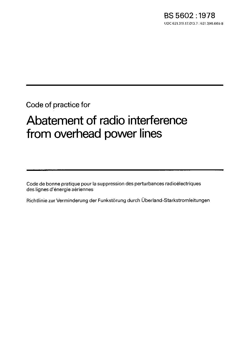Radio interference characteristics of overhead power lines and high-voltage equipment Code practice for minimizing the generation radio noise