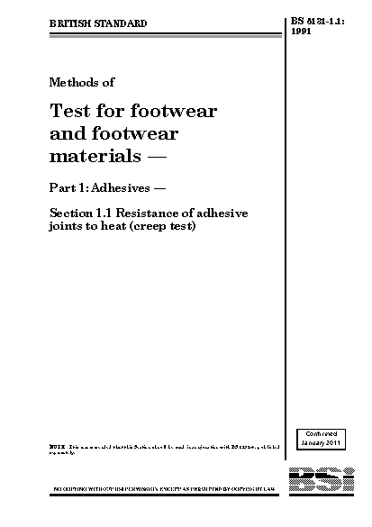 Methods of test for footwear and materials. Adhesives Resistance adhesive joints to heat (creep test)