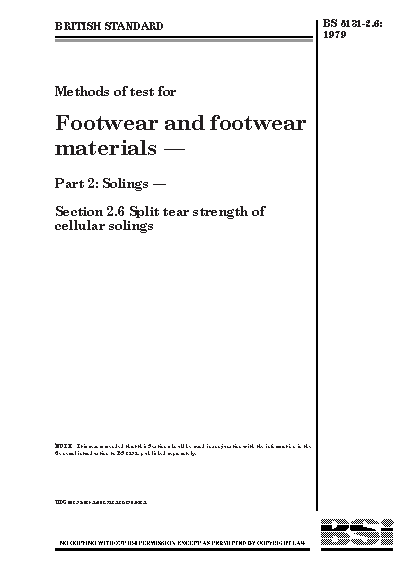 Methods of test for footwear and materials. Solings Split tear strength cellular solings