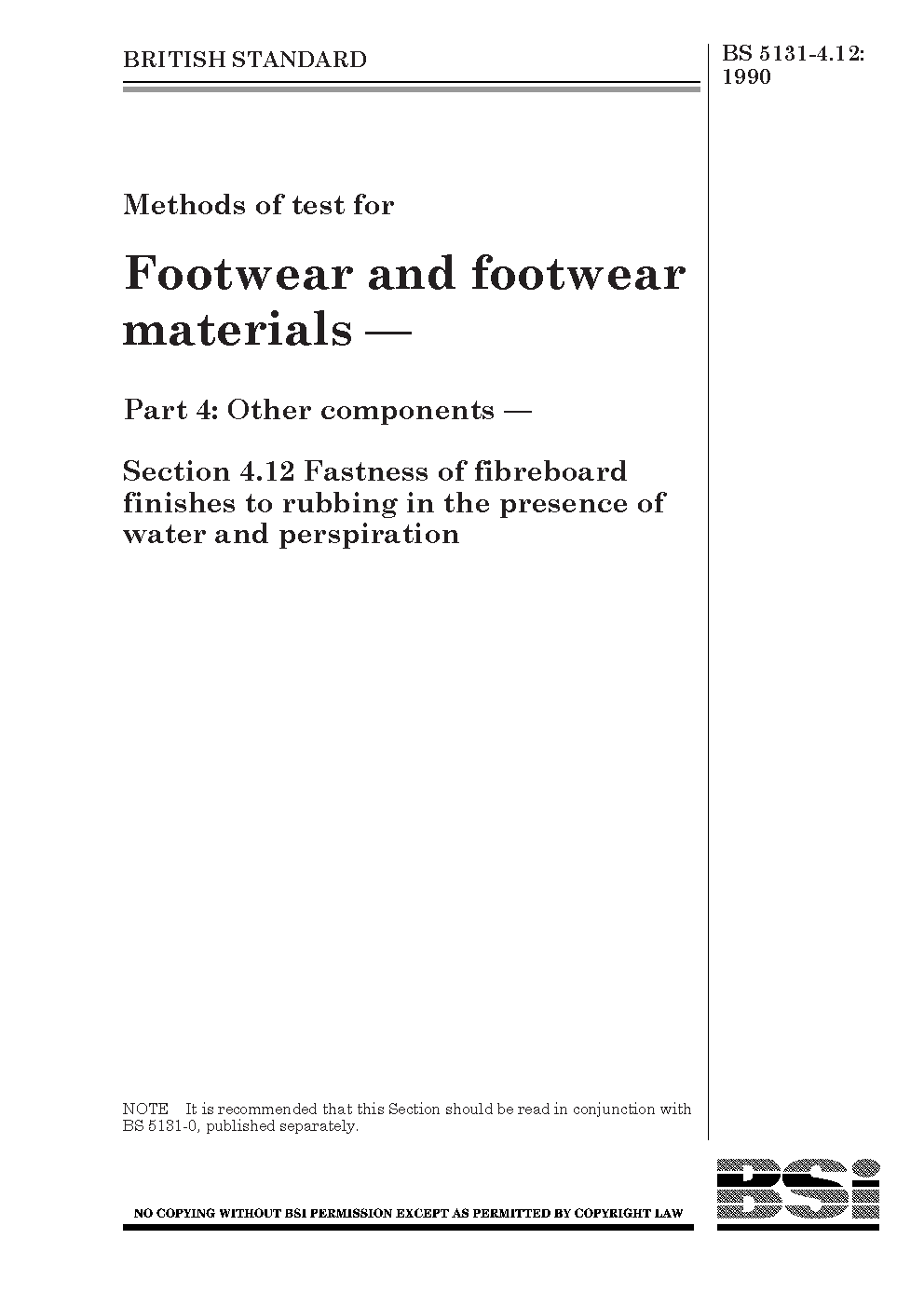 Methods of test for footwear and materials. Other components Fastness fibreboard finishes to rubbing in the presence water perspiration