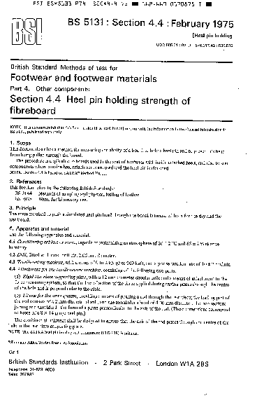 Methods of test for footwear and materials. Other components Heel pin holding strength fibreboard