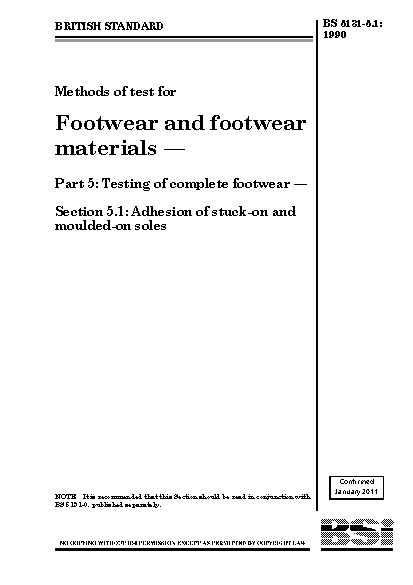 Methods of test for footwear and materials. Testing complete Adhesion stuck-on moulded-on soles