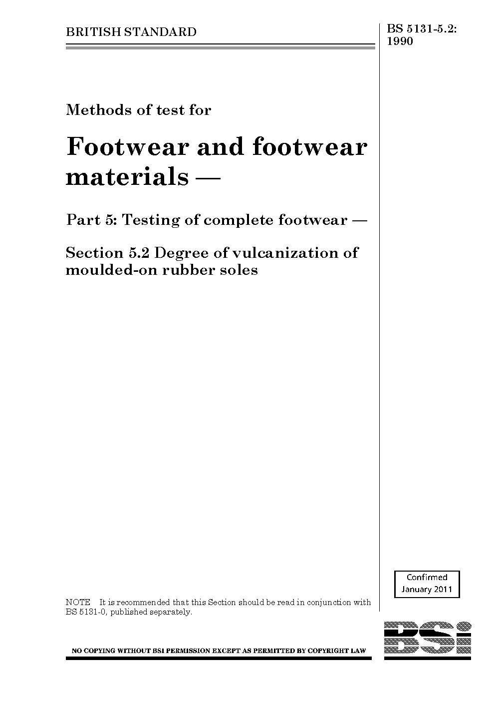 Methods of test for footwear and materials. Testing complete Degree vulcanization moulded-on rubber soles