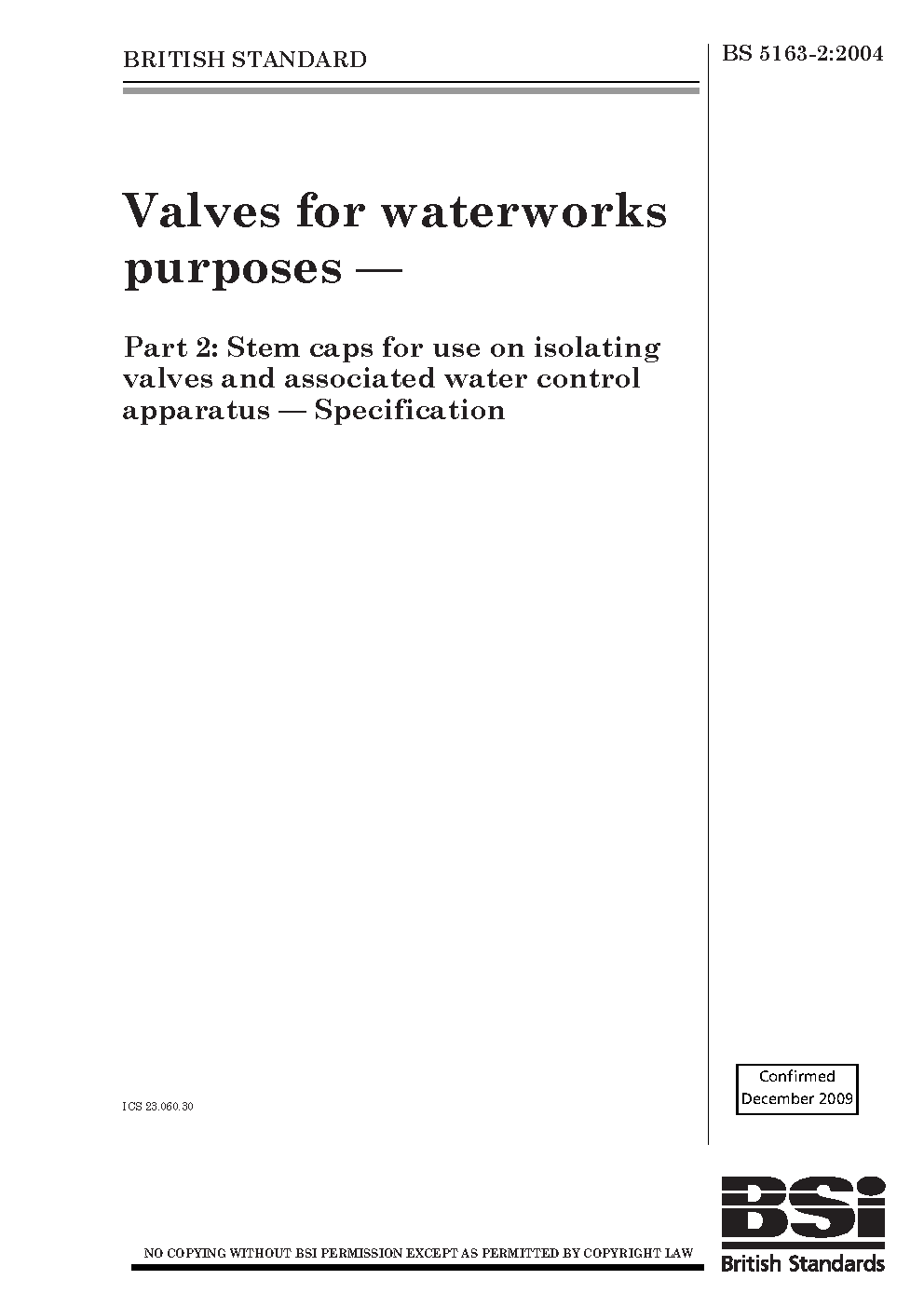 Valves for waterworks purposes Stem caps use on isolating valves and associated water control apparatus. Specification