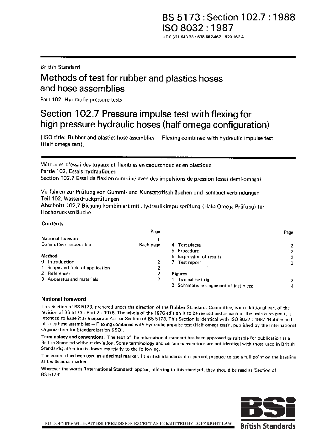 Methods of test for rubber and plastics hoses hose assemblies. Hydraulic pressure tests Pressure impulse with flexing high hydraulic (half omega configuration)