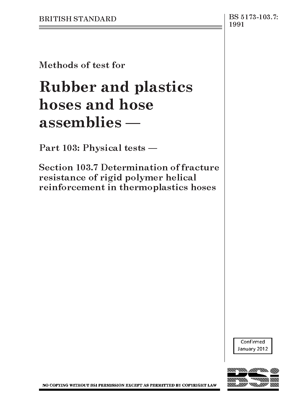 Methods of test for rubber and plastics hoses hose assemblies. Physical tests Determination fracture resistance rigid polymer helical reinforcement in thermoplastics