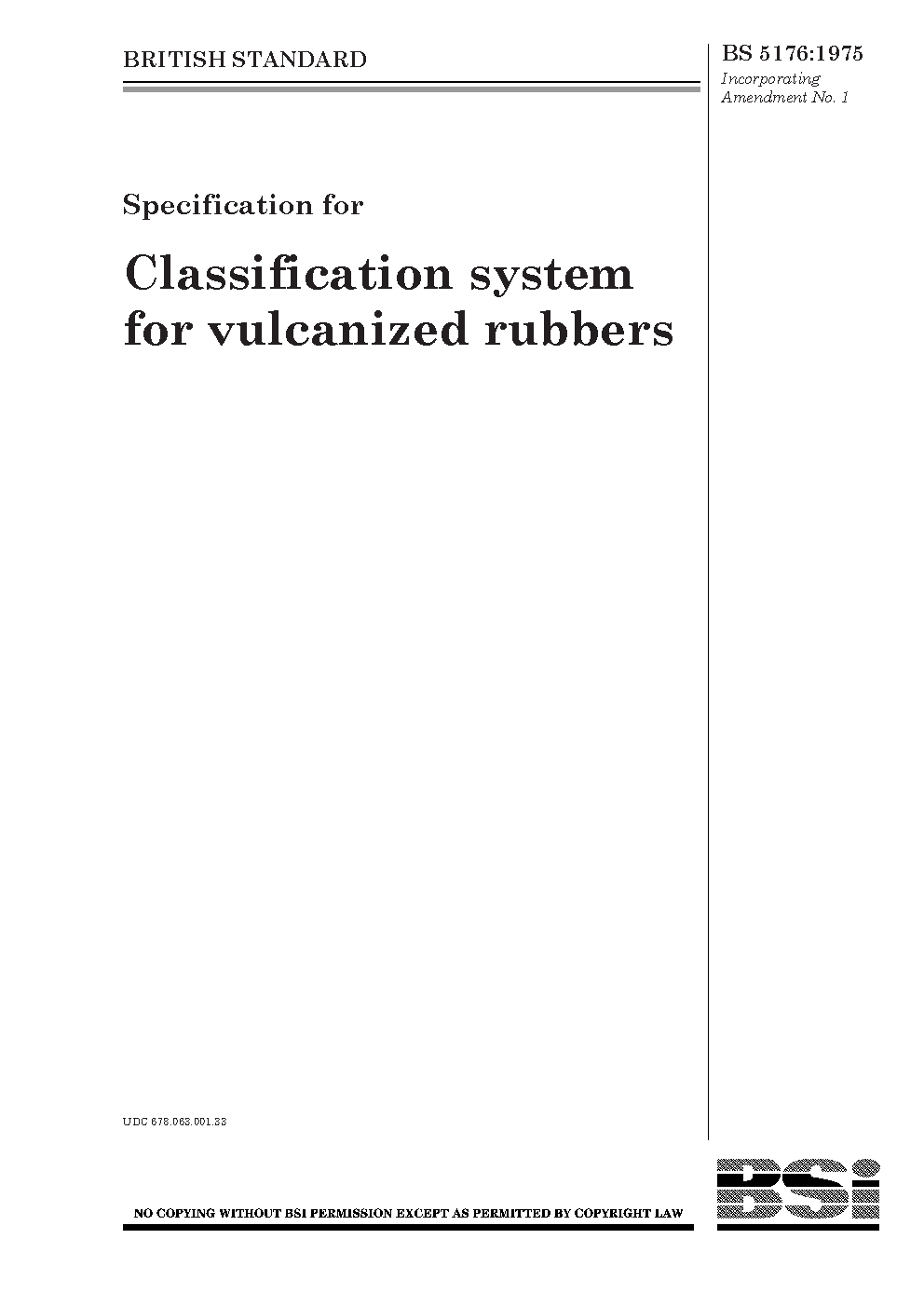 Classification system for vulcanized rubbers. Specification