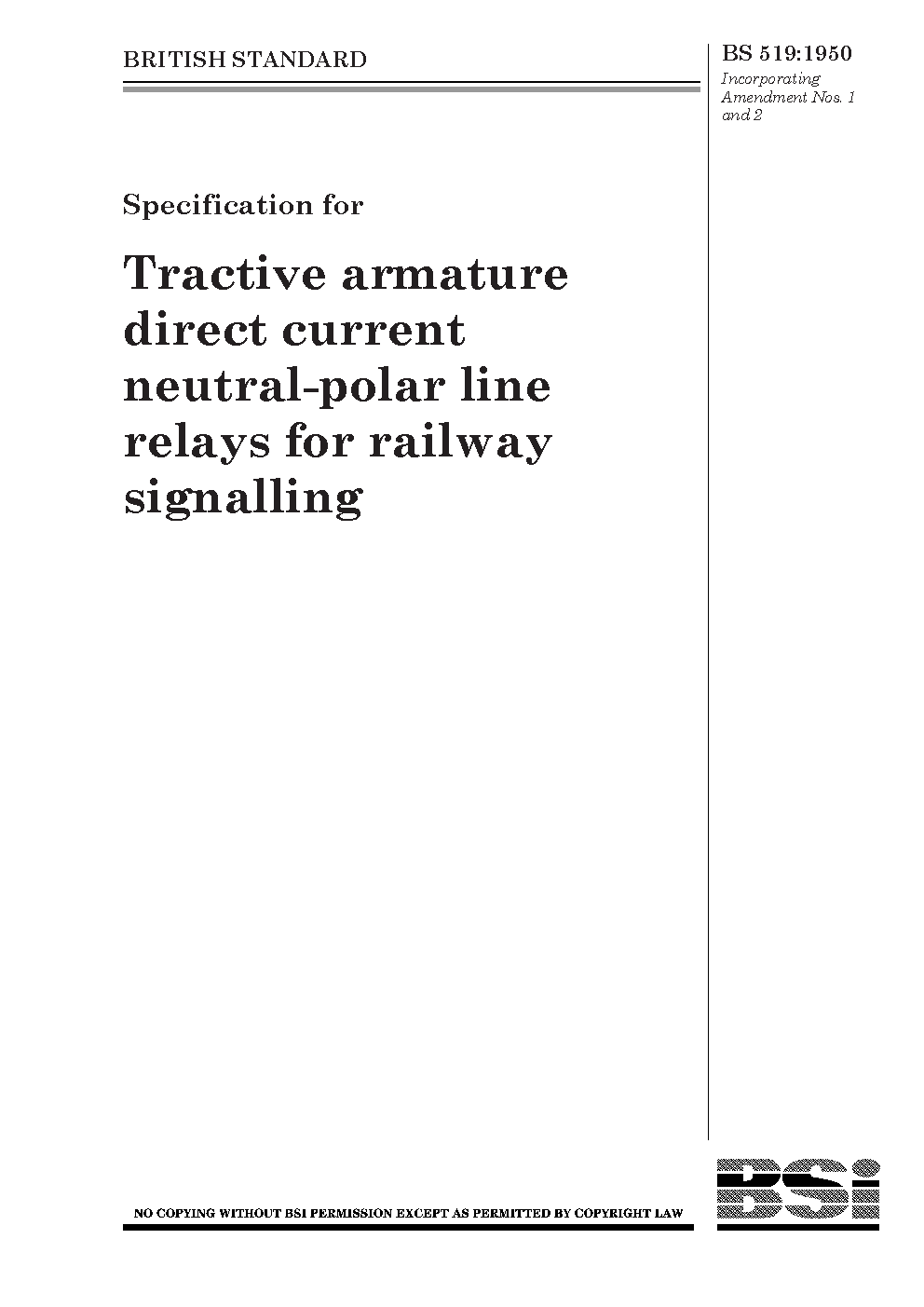 Specification for tractive armature direct current neutral-polar line relays for railway signalling
