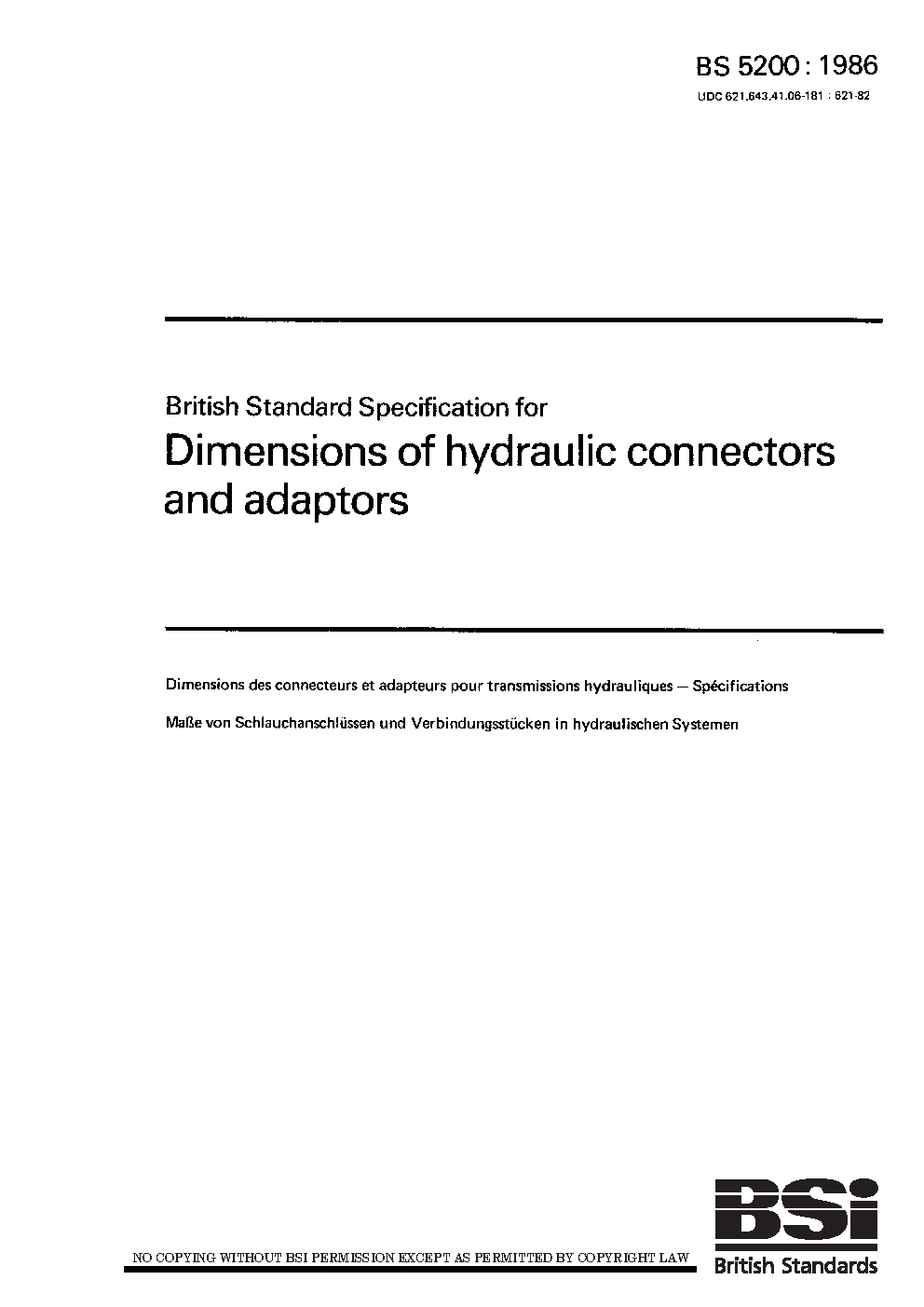 Specification for dimensions of hydraulic connectors and adaptors